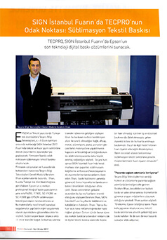 Tecpro, Tekstil Teknoloji Dergisi Eylül 2017 / Tecpro, Sign İstanbul da, Epson"un Son Teknoloji Dijital Baskı Çözümlerini Sunacak